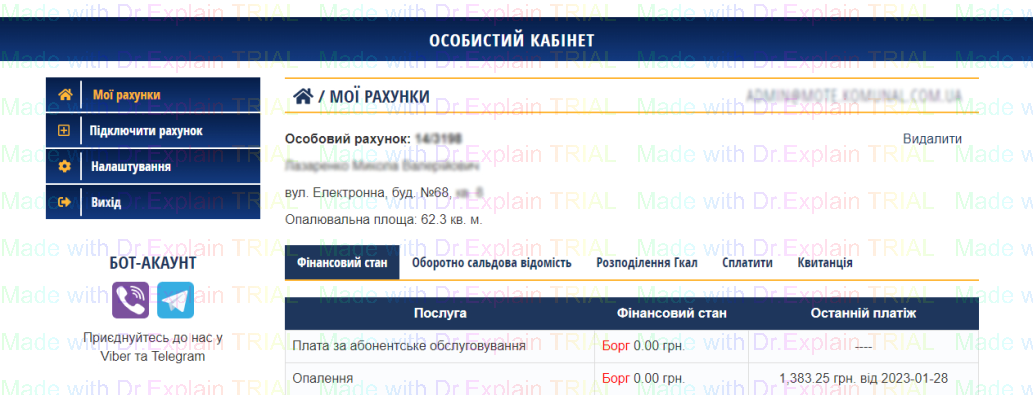 - Після цього відкриється Ваш особистий кабінет: